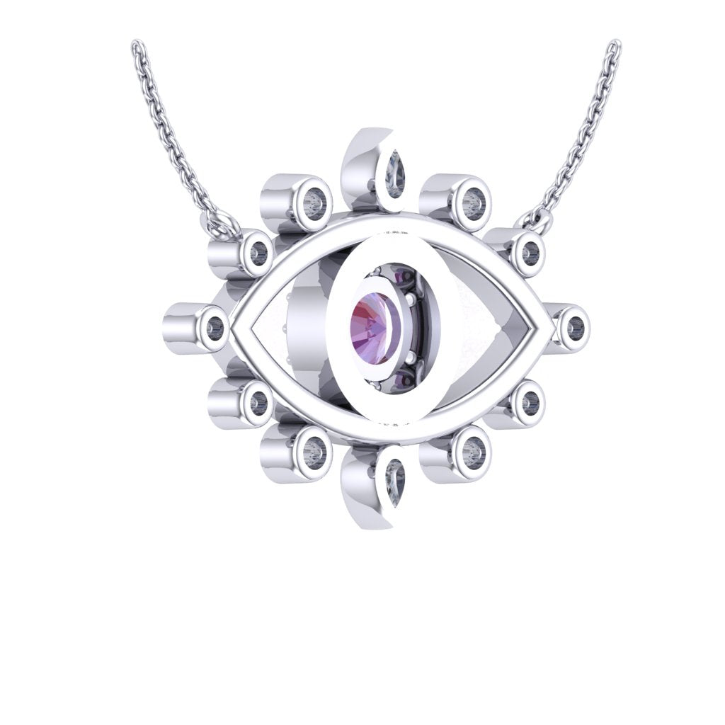 Lab-Grown Round 1.22ct Alexandrite Pendant with Moissanite Diamonds in 14k White Gold Plating
