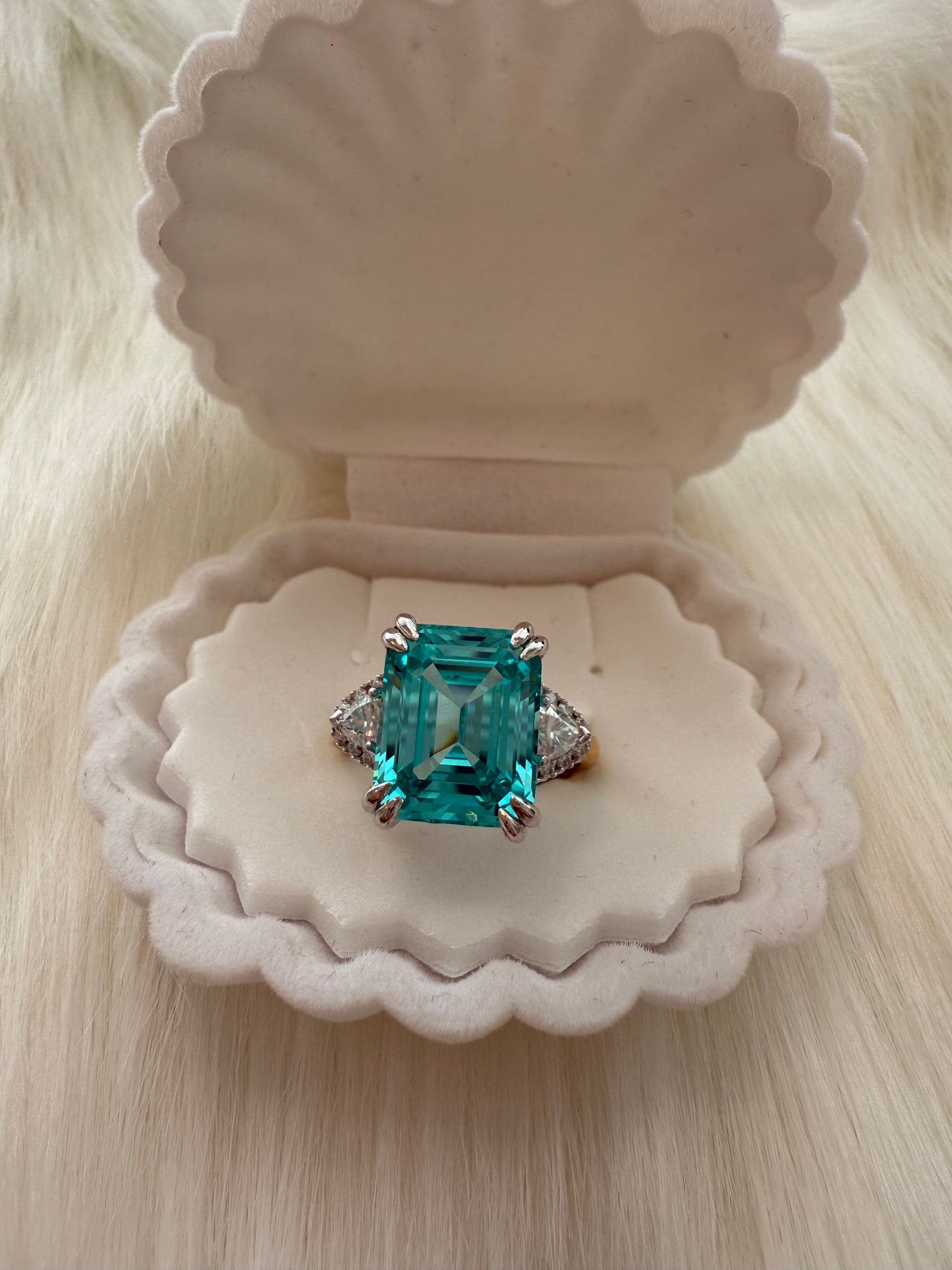 Paraiba Emerald-Cut Ring – 10.26ct with Trillion Moissanite Accents