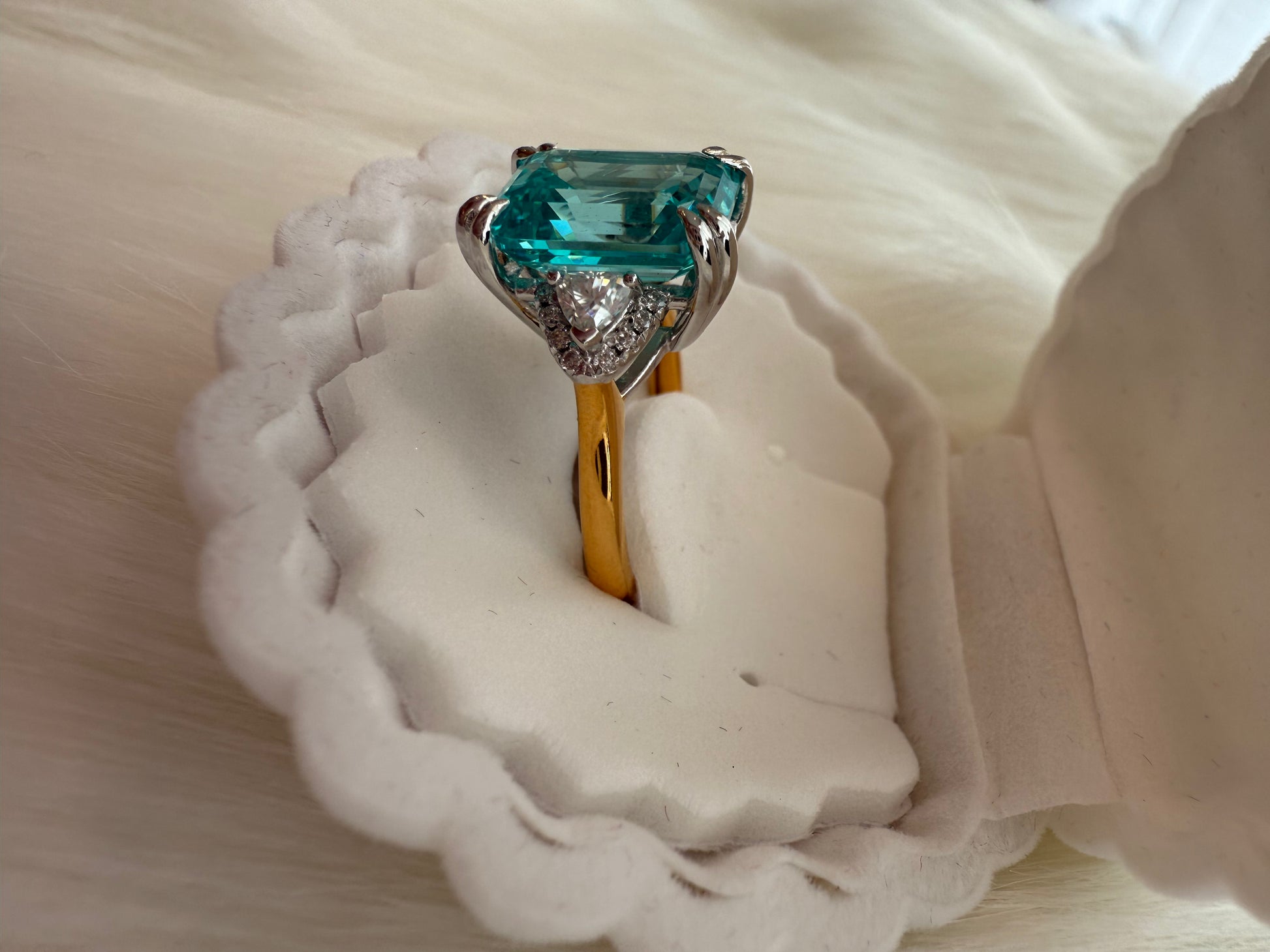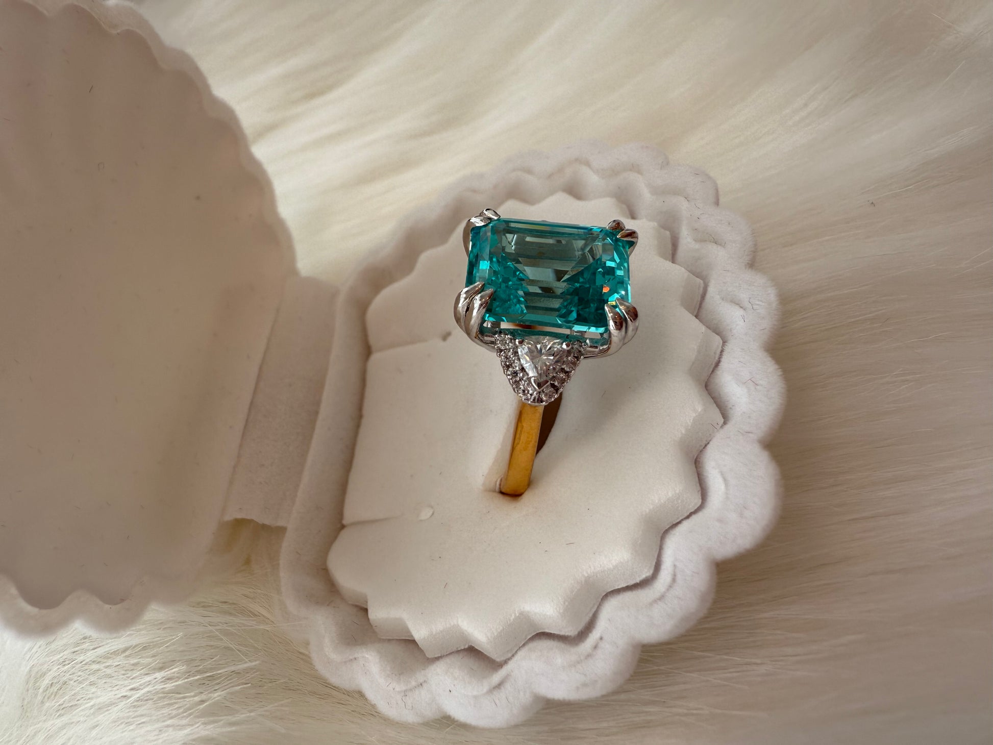 Paraiba Emerald-Cut Ring – 10.26ct with Trillion Moissanite Accents - meet 'Sasithorn'